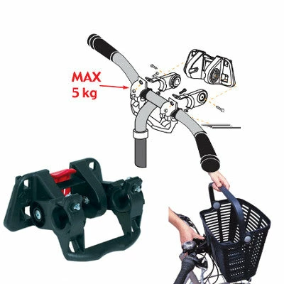 Le panier mesure L 32 x l 26 x h 24 cm. Il est fourni avec un système de fixation universel sur guidon, rapide à installer et à enlever lorsque vous quittez le vélo pour faire vos courses par exemple. La fixation est compatible avec des guidons jusqu’à 35 mm de diamètre. 3 paires de réducteurs sont fournis pour adapter le panier sur des guidons de 22, 26 ou 32 mm.