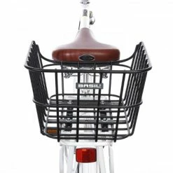 Le panier avant de vélo permet de transporter de nombreuses affaires lors de vos déplacements en deux roues. Il possède une capacité de 21 litres pour une charge de 4 kg. Il est composé d’une grille métallique solide à fines mailles et d’une anse avec poignée confortable qui permet de le transporter à pied. A vélo, il se fixe facilement sur le guidon de votre bicyclette grâce à un système de colliers de fixation qui s’adapte aux cintres dont le diamètre est de 25.4 mm.