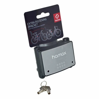 Cette fixation Hamax est faite pour installer un siège enfant de la marque Hamax. La particularité de ce modèle, par rapport à la fixation sur tube de selle Hamax fournie avec les sièges, est que celle ci se verrouille par une clé. Il devient donc impossible d’enlever le siège du vélo sans posséder la clé de la fixation. Cette fixation est fournie avec deux clés.