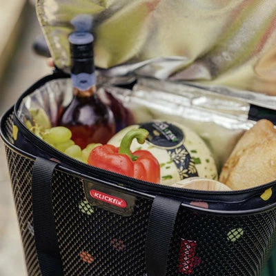 Klickfix propose son sac de course isotherme Iso Basket Bag. Parfaitement adapté pour transporter pique-nique et courses à vélo, le sac garde les aliments et boissons fraiches ou chaudes à température pendant votre trajet jusqu’à votre domicile. Grâce à sa double anse, il vous sert de sac de course en intérieur, et s’installe ensuite dans un panier avant pour le transport à vélo.