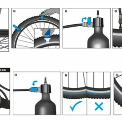 L’embout se visse sur un raccord de pompe de 10 mm de diamètre et possède une tête à double trou qui permet gonfler plusieurs types de valves : Presta, Schrader et Dunlop. Le levier sur le dessus permet, comme sur la majorité des pompes à pied, de bien maintenir la valve.