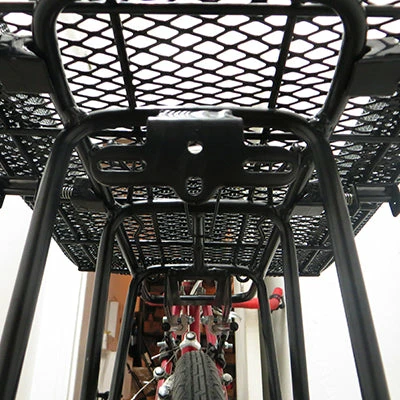 Le panier de vélo California de la marque Basil permet de transporter beaucoup d’affaires. A la fois sobre et moderne, ce panier vélo est disponible en noir. Ses dimensions sont 51 cm de long, 31 cm de large et 18 cm de hauteur. En acier, il est constitué de mailles fines. Il est à installer dans le sens de la longueur du porte-bagage. Le panier pèse 1 kilo 660 grammes.